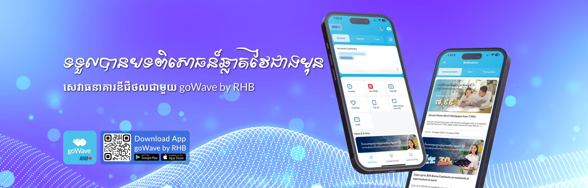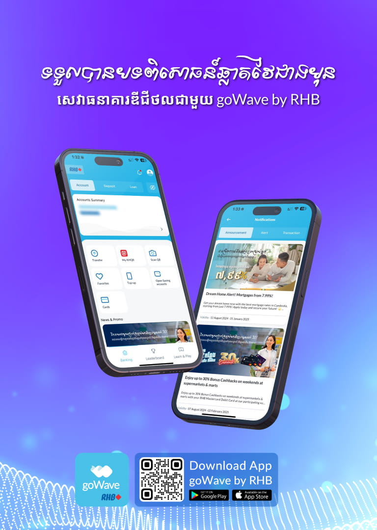 ទទួលបានបទពិសោធន៍សេវាធនាគារឌីជីថលដ៏ឆ្លាតវៃជាងមុនជាមួយកម្មវិធីធនាគារ goWave By RHB