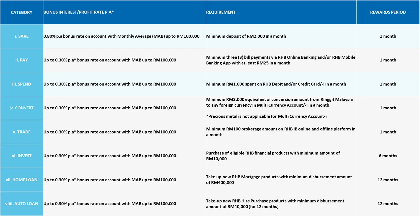 In order to enjoy PAY Bonus Rate, you must meet SAVE criteria as per below first before you are entitled for the PAY Bonus rate:-