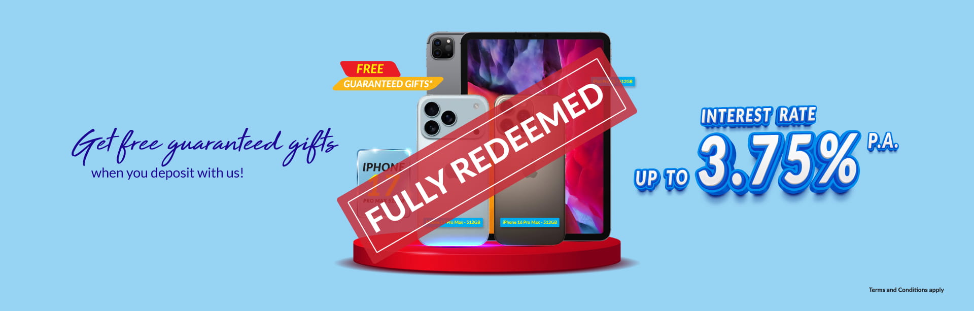 Start building your financial future today and enjoy free guaranteed gifts when you deposit with us. Whether you're saving for a goal or simply growing your wealth, we believe every step deserves a reward. With RHB, your commitment to saving is celebrated—because smart choices should come with smart benefits.